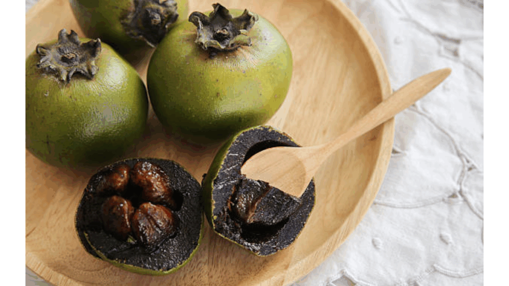 Sapote negro (Caqui negro o caqui chocolate): De pulpa oscura y sabor a chocolate. Rico en potasio y vitamina A.