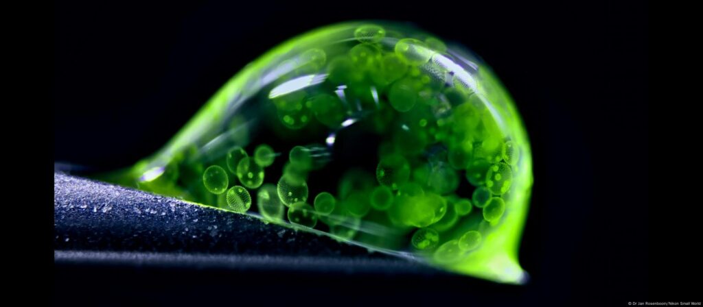 Jan Rosenboom, ingeniero químico de Alemania, obtuvo el segundo lugar con una imagen de algas volvox en una gota de agua. Las colonias esféricas, que pueden contener hasta 50.000 células, fueron captadas con microscopía de luz reflejada, generando una imagen que parece suspendida entre ciencia y abstracción.