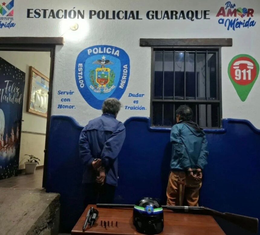 Funcionarios de la policía del estado Mérida detuvieron a dos hombres de 64 y 65 años en el municipio Guaraque luego de que celebraran públicamente la captura de Nicolás Maduro y Cilia Flores por parte de Estados Unidos. El procedimiento se realizó en el sector Los Cedros, parroquia Río Negro, tras una denuncia que los señalaba por “alterar el orden público” con consignas contra el gobierno.