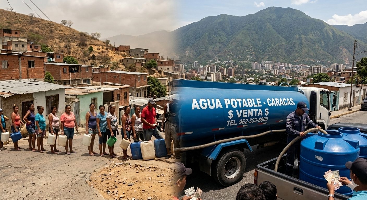 La consecuencia social es una mezcla de desigualdad y tensión permanente: quienes pueden pagar cisternas o comprar agua embotellada mitigan parcialmente la crisis, mientras los sectores más pobres quedan atrapados entre la falta de servicio, problemas de salud asociados al consumo de agua de mala calidad y protestas recurrentes por la ausencia de respuestas oficiales. Para muchos caraqueños, la vida diaria se ha transformado en una carrera por conseguir y almacenar agua, donde cada falla del sistema público se traduce en nuevas oportunidades de negocio para operadores privados de cisternas.
